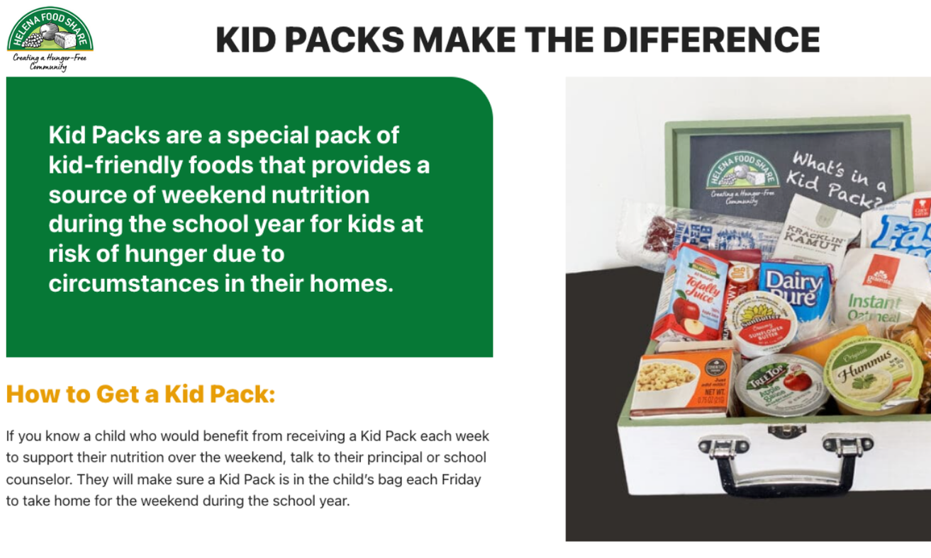 We would like to remind you of the Helena Food Share’s Kid Packs as a resource–